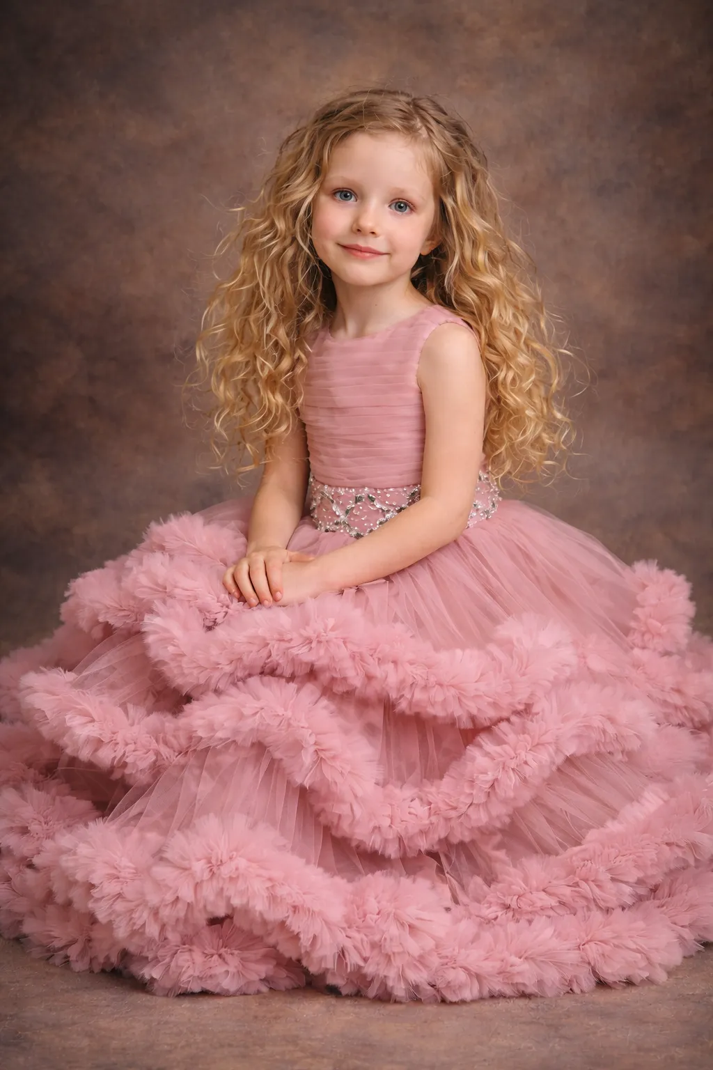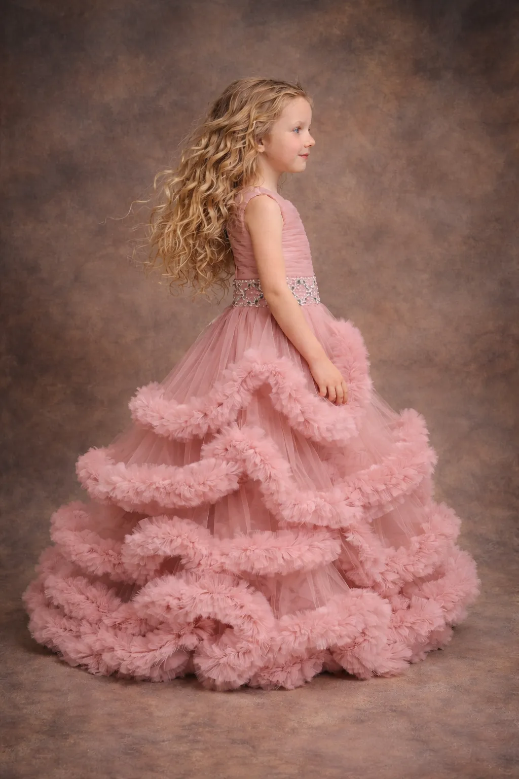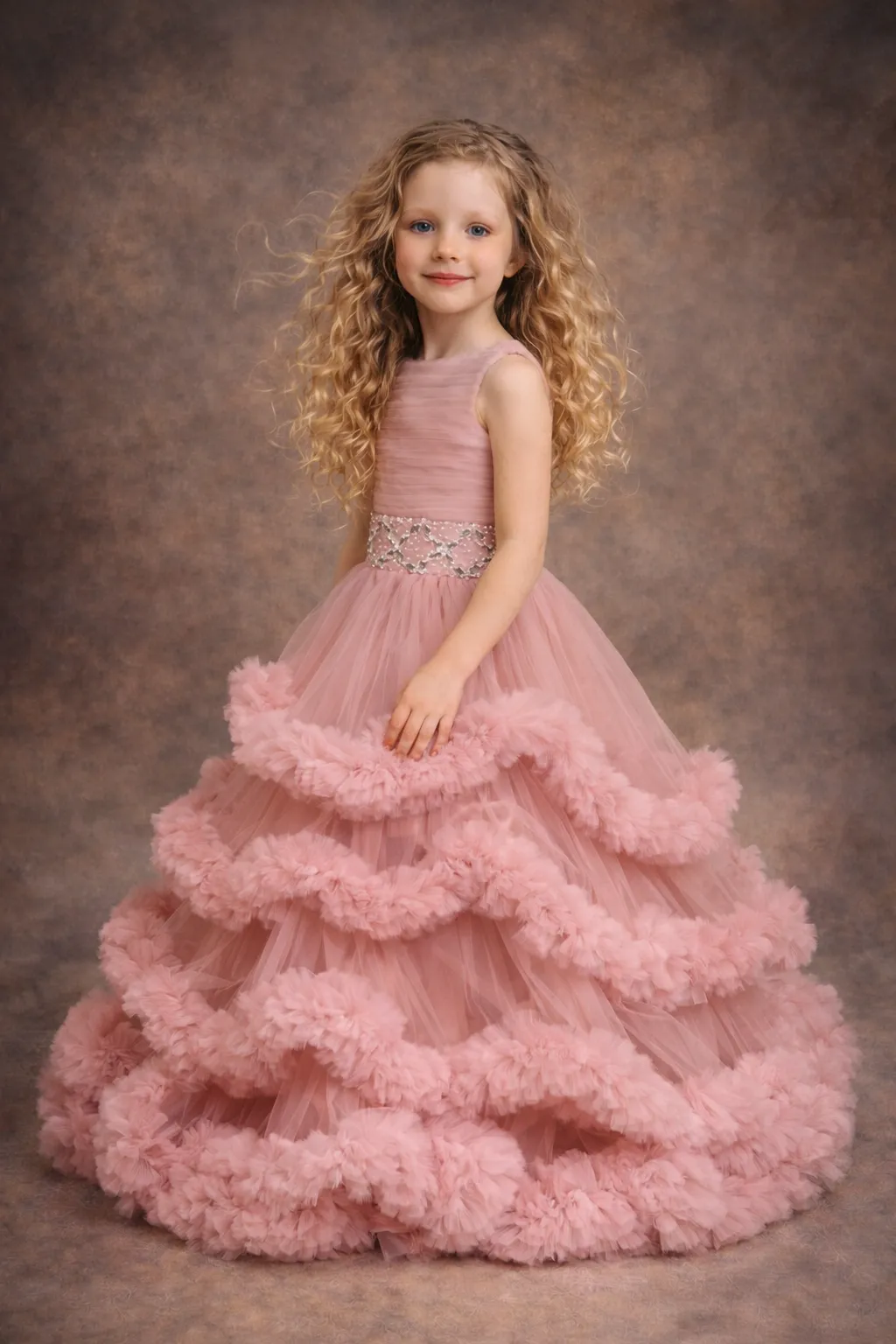 Éveillez la princesse en votre petite fille avec cette robe majestueuse en tulle délicat, ornée de volants en plumetis qui créent une silhouette féerique. Sa taille ceinturée de strass ajoute une touche d'éclat, rendant cette pièce parfaite pour des occasions spéciales comme les mariages ou les anniversaires. Un incontournable pour les moments inoubliables!