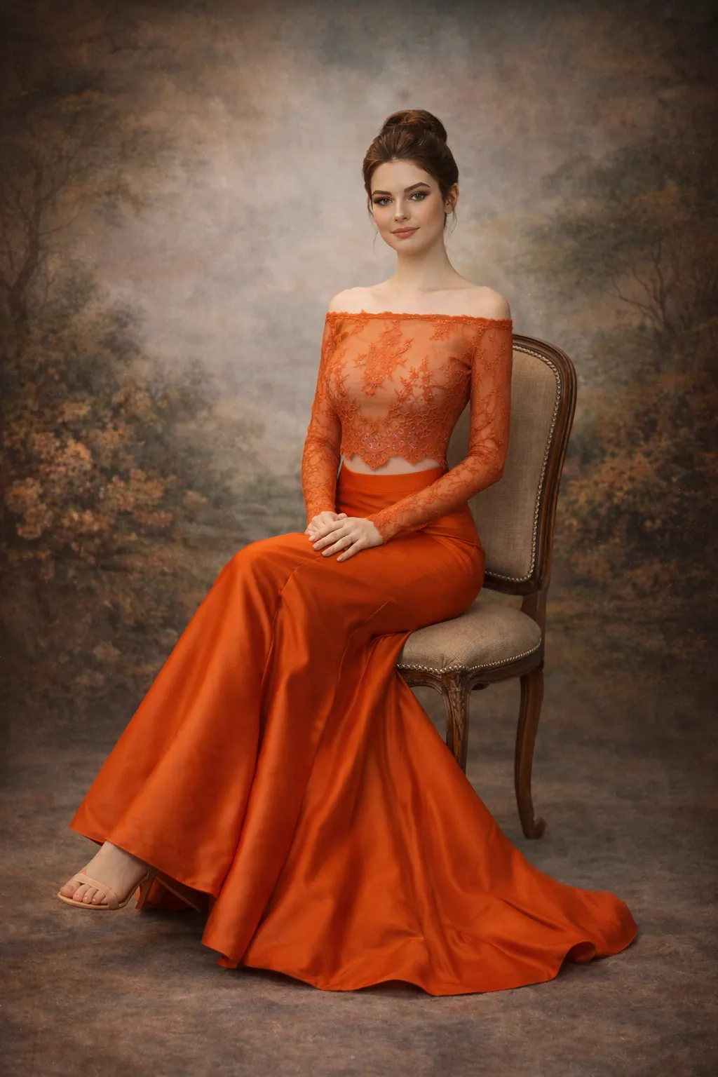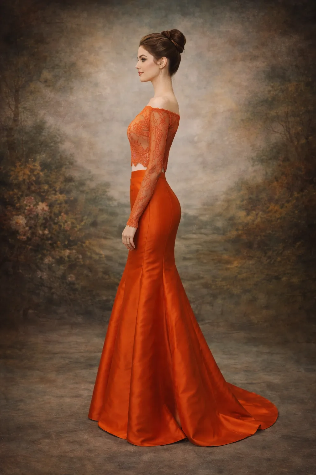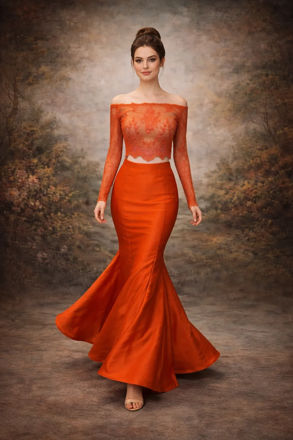 Cette robe de soirée en satin orange captivant offre une silhouette élégante avec une coupe sirène, soulignant délicatement les courbes. Le corsage en dentelle fine, ornée de broderies délicates, apporte une touche de romantisme, tandis que les manches longues ajoutent une note de sophistication. Parfaite pour des occasions telles que les galas, mariages ou soirées de prestige, elle vous assurera une allure mémorable.