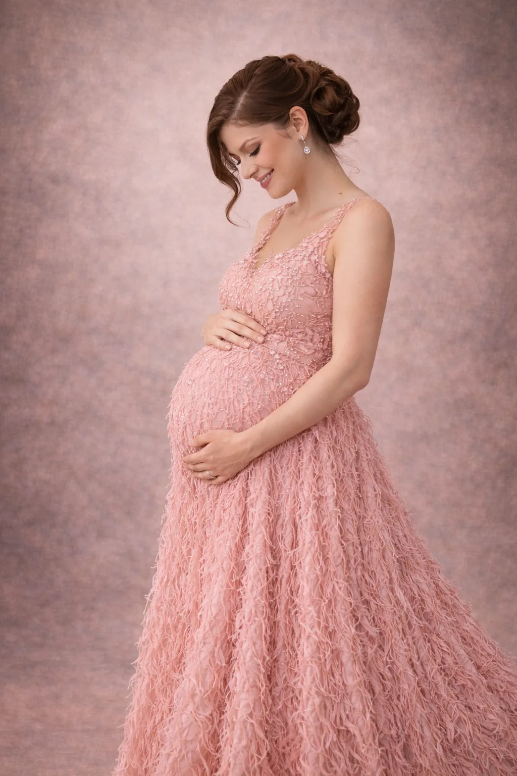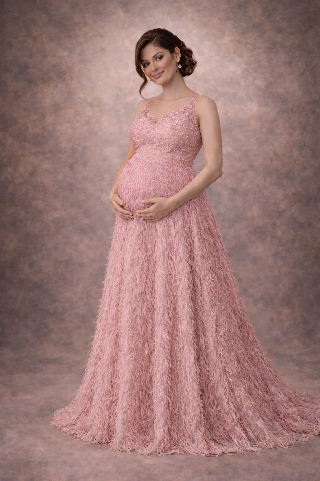Évoquez la grâce et la féminité avec cette robe pour femme enceinte, conçue en tulle délicat aux nuances roses. Sa coupe empire flatte la silhouette, tandis que des détails en dentelle scintillante soulignent le décolleté et les épaules. Parfaite pour des occasions mémorables telles que des séances photo ou des baby showers, cette robe transforme chaque moment en un instant exquis.