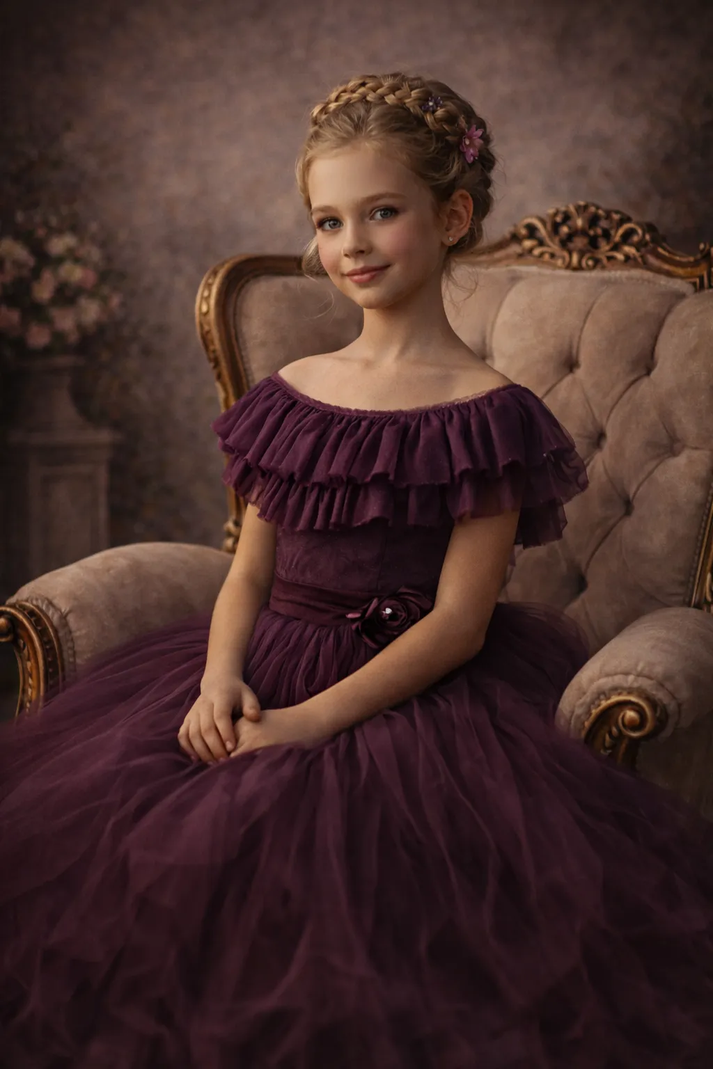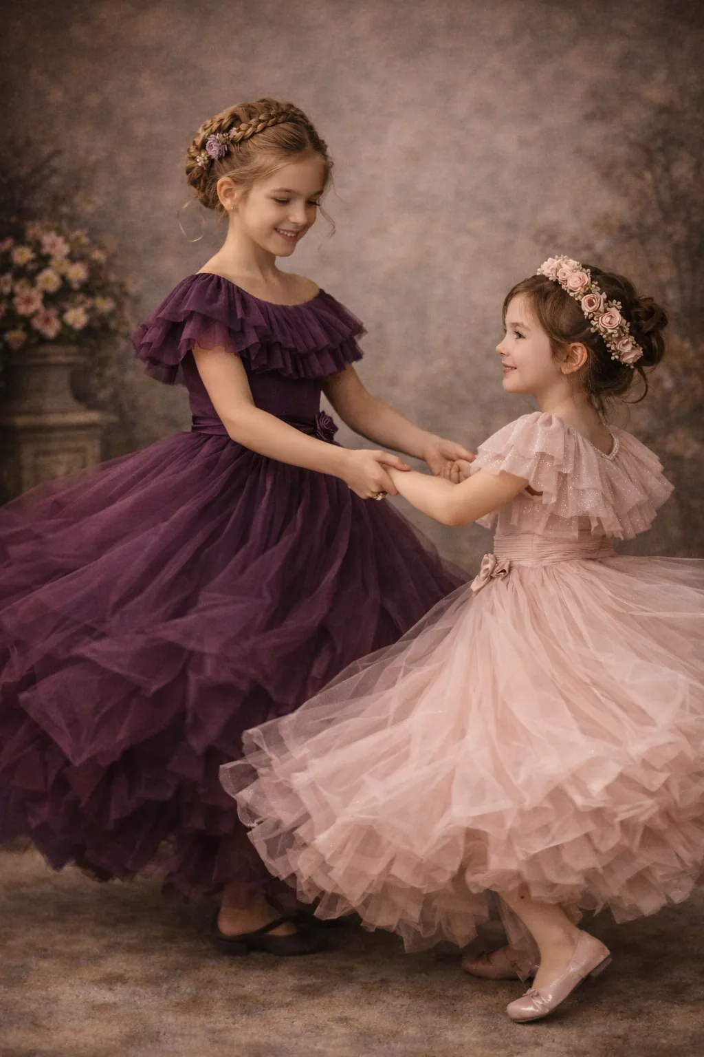 Cette robe raffinée en tulle présente une coupe ample et aérienne, ornée de délicates volants pour un effet romantique. Son mélange de teintes pastel et de détails floraux en dentelle en fait le choix parfait pour des occasions spéciales telles que les mariages ou les fêtes d'anniversaire. Offrez à votre petite princesse une allure féerique et inoubliable.