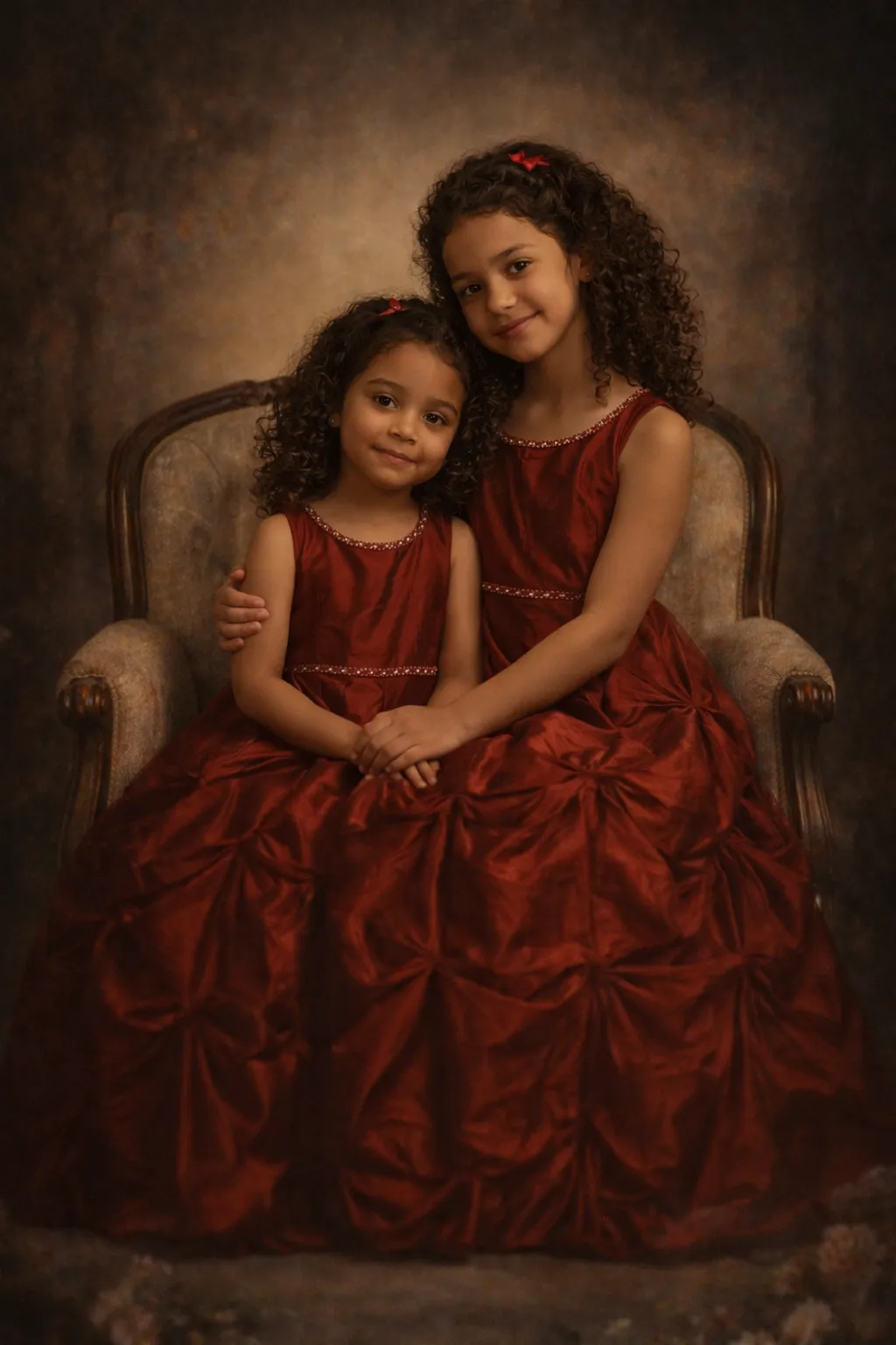 Éblouissante robe pour petites filles en satin bordeaux, offrant une coupe élégante avec un jeu de plis sculptés et une délicate ceinture ornée de strass. Sa silhouette fluide et raffinée, parfaite pour les mariages ou les fêtes, fera briller votre petite merveille lors des occasions spéciales.