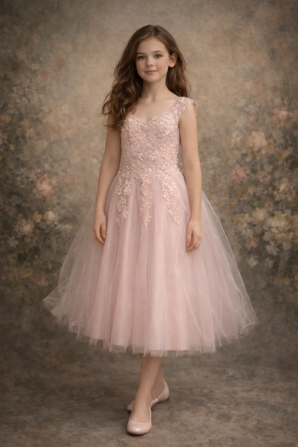 Cette ravissante robe pour petites filles allie élégance et charme avec sa coupe évasée et son délicat corsage orné de broderies florales. Le tulle vaporeux dans une teinte rose poudré apporte une touche de magie, idéale pour des occasions spéciales telles que les anniversaires ou les cérémonies. Une pièce qui fera briller les princesses en herbe !