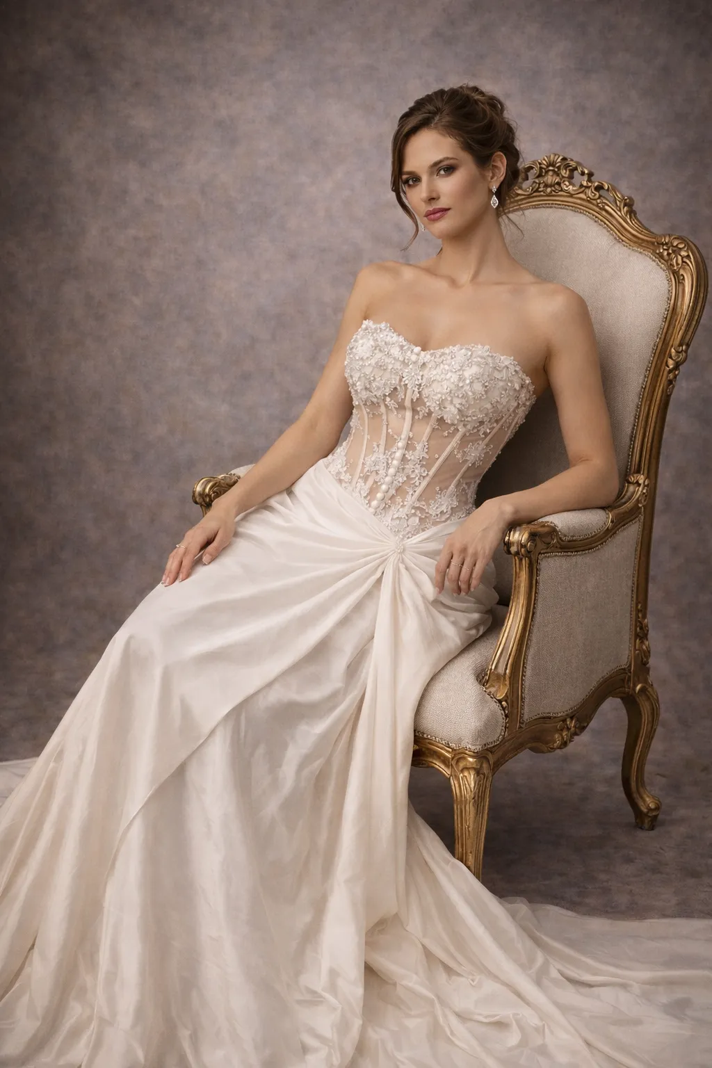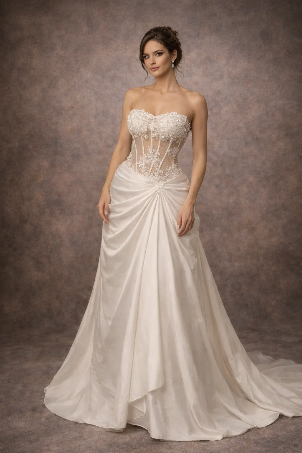 Cette magnifique robe de mariée coeur, au corsage délicatement orné de broderies florales en dentelle, sublime la silhouette avec une élégance intemporelle. Sa jupe en satin fluide et drappée offre une allure romantique, idéale pour un mariage chic ou une cérémonie en plein air. Laissez-vous séduire par le mariage parfait de sophistication et de grâce, pour le jour le plus important de votre vie.